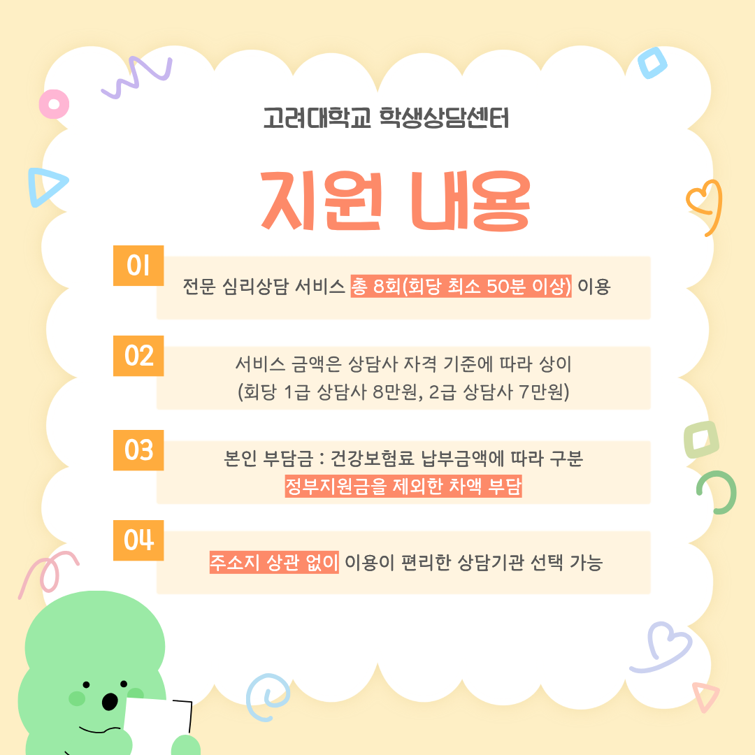 안녕하세요. 고려대학교 학생상담센터입니다.