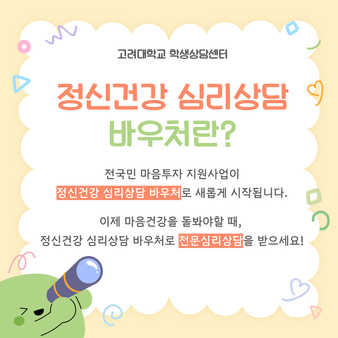 보건복지부에서 운영하는 '정신건강 심리상담 바우처 사업'에 대해 안내드립니다.