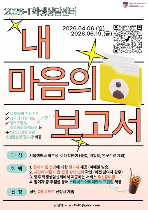 * 참여 대상 : 고려대학교 서울캠퍼스 학부생 및 대학원생(졸업, 미입학, 영구수료 제외)